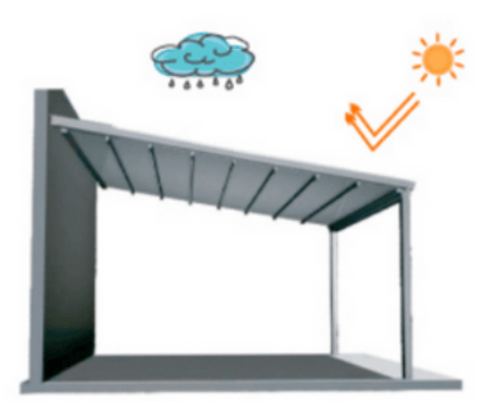 Our automatic awning is a retractable roof attached to the top of a structure, consisting of canvas or other durable fabric stretched over a frame. It provides shade and protection from the sun or rain usable in outdoor areas.